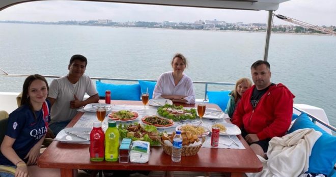 🍴 Пока вы расслабляетесь, экипаж готовит вкусный шведский стол на обед на борту, включая курицу, рыбу, котлеты, пасту, салат, хлеб и свежие фрукты. Неограниченные безалкогольные напитки также включены.