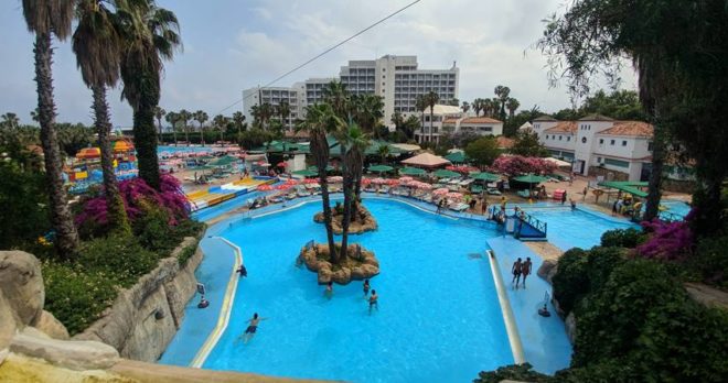 The park is suitable for toddlers, with baby pools, shaded areas, and stroller access. Lunch includes a buffet with grilled meats, pasta, fresh salads, and kid-friendly options. Towels can be brought from home or rented on-site for a small fee.