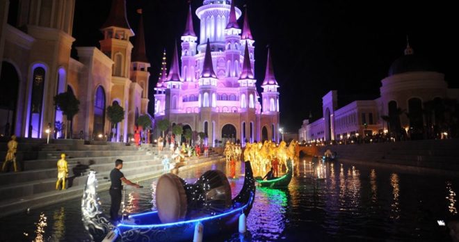 Thrilling water, light, and fire show with 20-meter fountains coordinated with music.