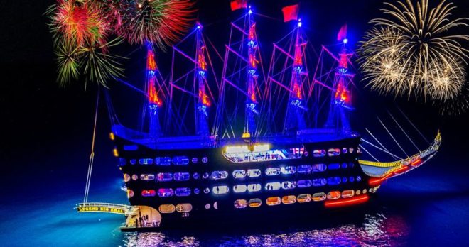 After dinner, participate in a second swimming break before the party begins. Experience a foam party under the stars in the ship's disco, dancing among clouds of foam. Be amazed by spectacular fire dances and fireworks lighting up the night sky 🎇🔥. The final 20-minute swim will refresh you before returning to Türkler harbor around 10:00 PM. Comfortable transportation will take you back to the hotel, completing a magical evening cruise 🚌🌙.